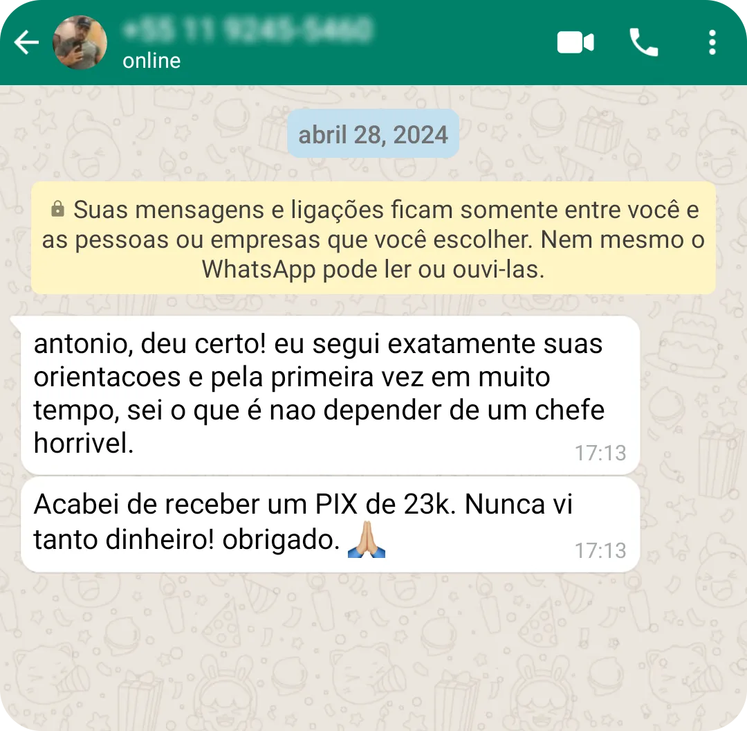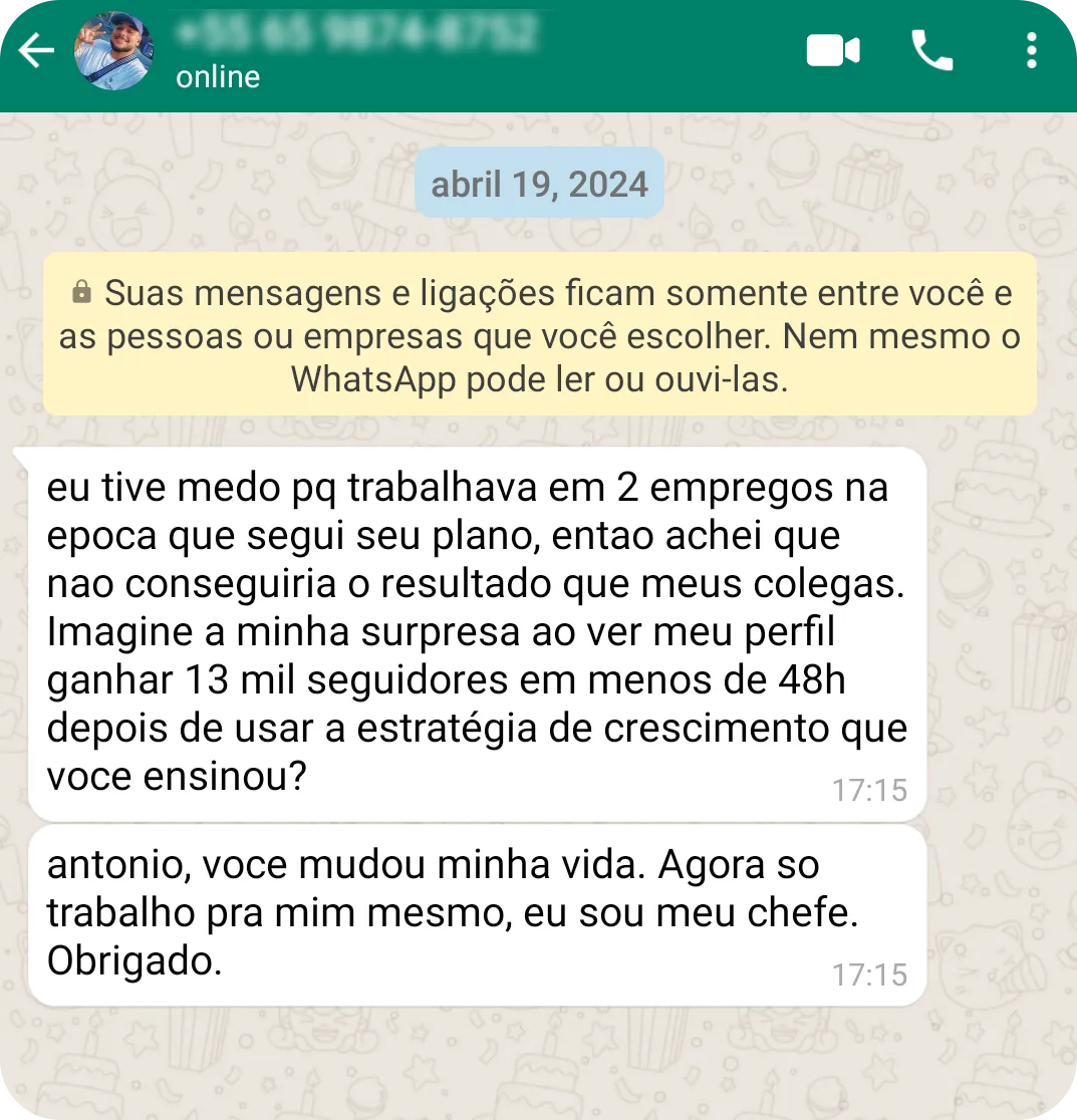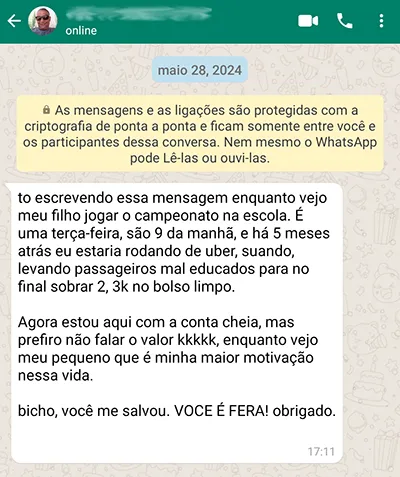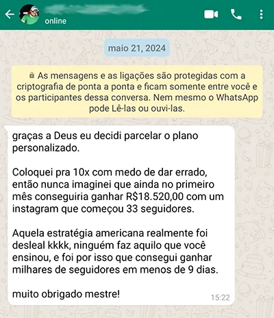 Vale lembrar: seu plano já está montado, pois eu montei o plano infalível de todo mundo que entrou em contato comigo pelo privado do WhatsApp.